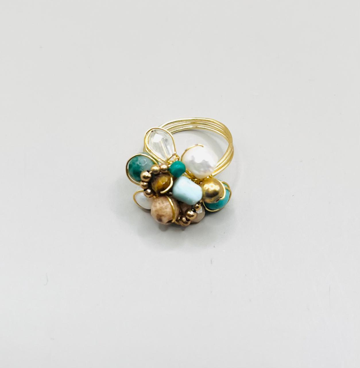 Anillo De Perla Y Piedra Natural/Chapa