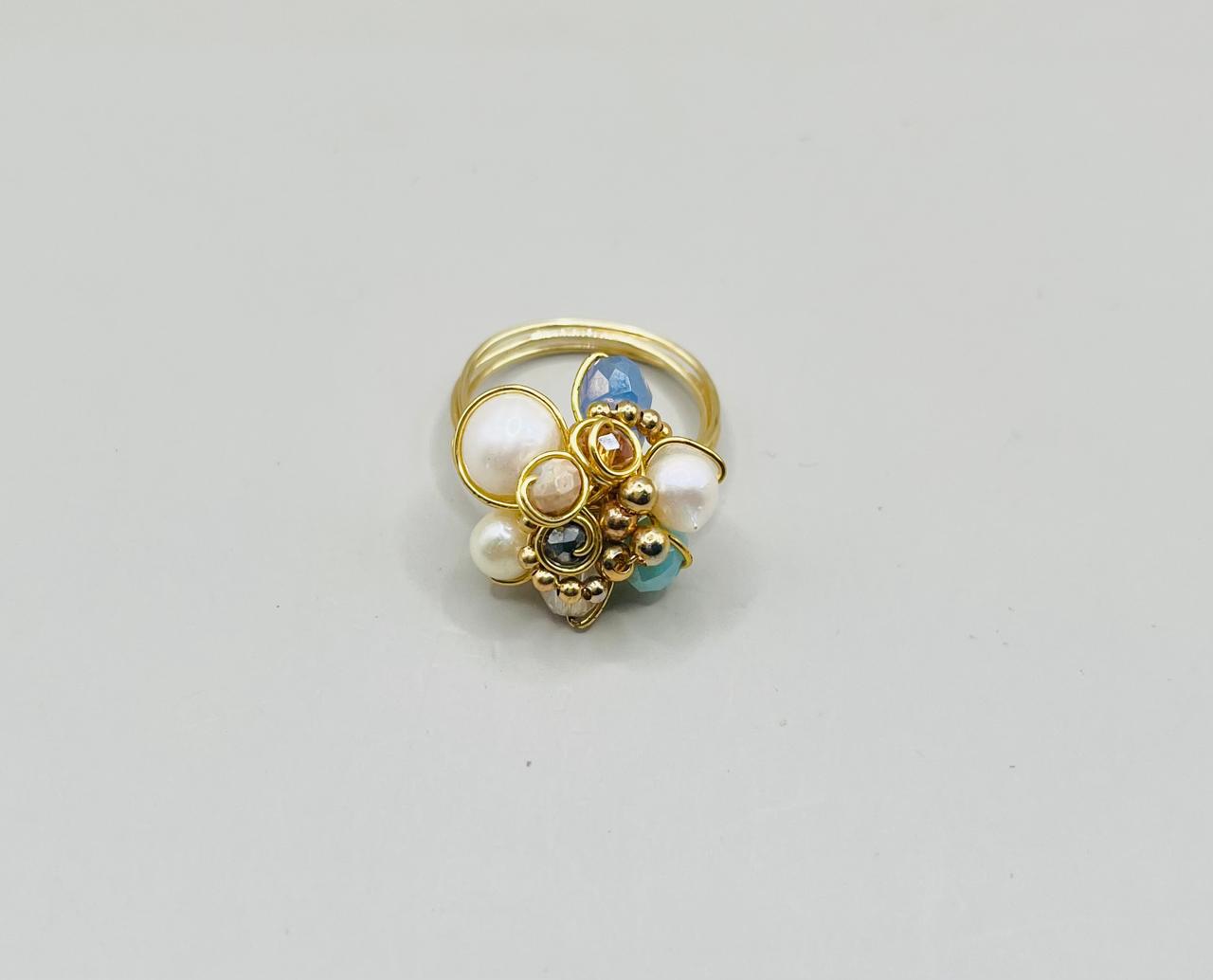 Anillo De Perla Y Piedra Natural/Chapa cantidad