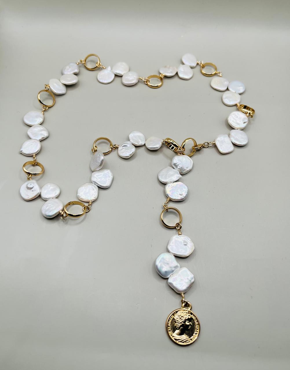 Collar Perlas Planas Naturales/ Chapa cantidad