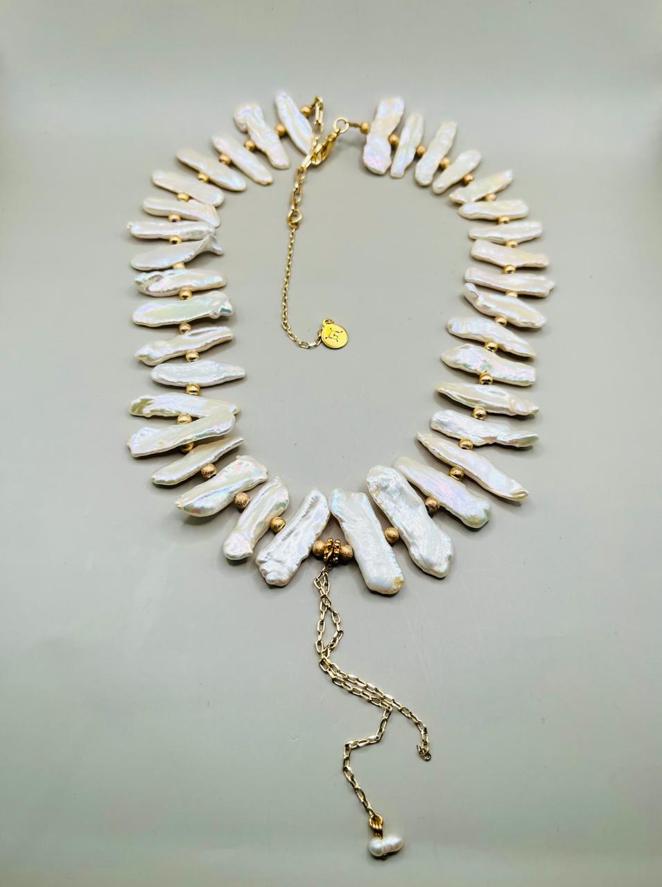 Collar Perlas Planas Naturales/ Chapa