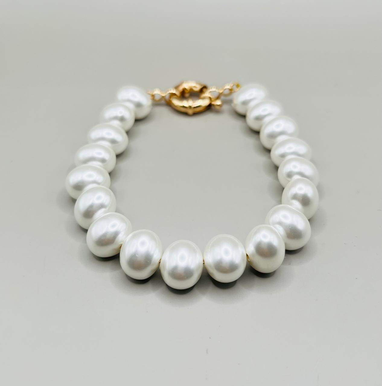 Pulsera Perla Natural Bola Lisa/Chapa