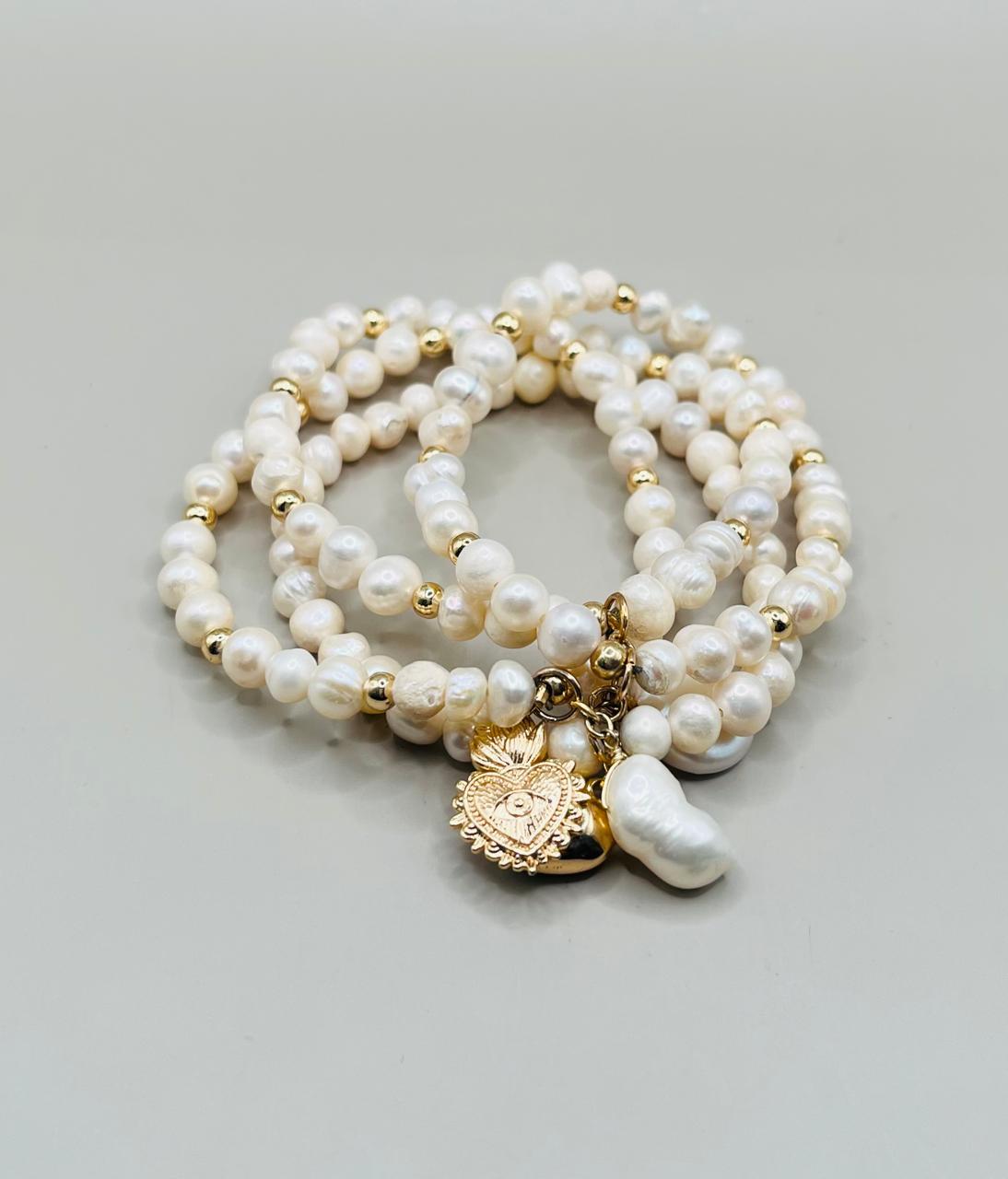 Pulsera Perlas Naturales/Dijes Chapa
