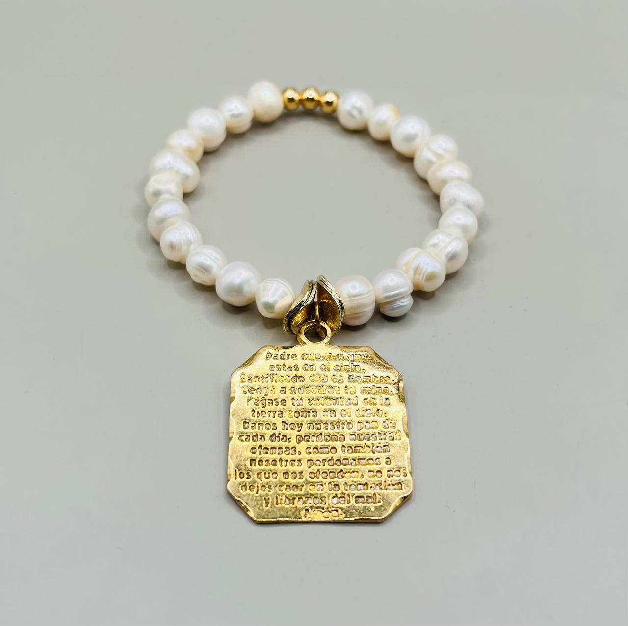 Pulsera Perlas Naturales Alambre Dorado/Chapa