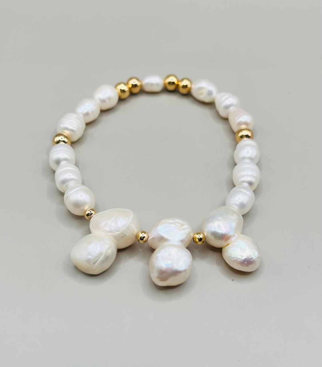 Pulsera Perlas Naturales Alambre Dorado/Chapa